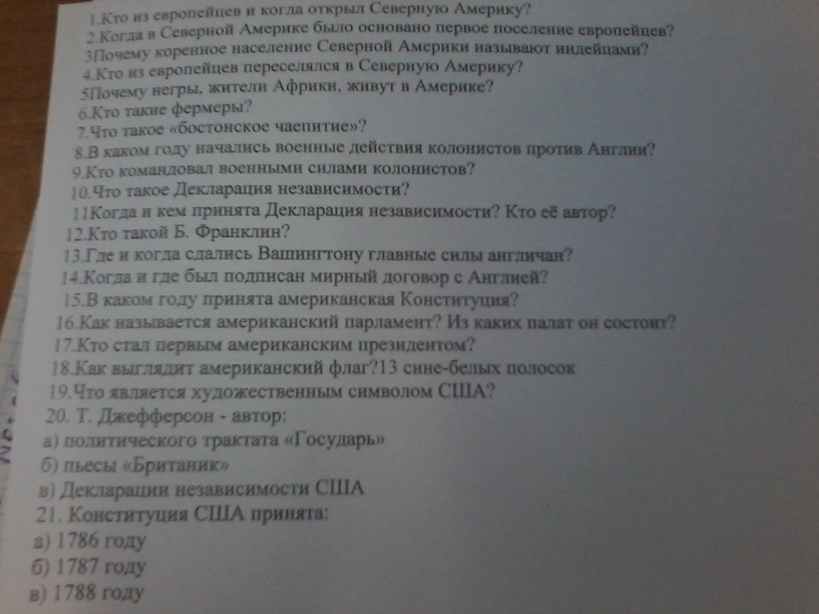 14. В 1783 году в Версальском дворце, во Франции15. В 1787 году16. Конгресс. Верхняя палата – Сенат, нижняя – Палата представителей17.Дж. Вашингтон