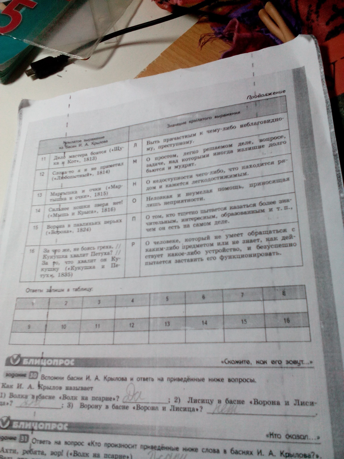 Где написано: Ответы запиши в таблицу это относится к этому заданию. Помогите пожалуйста.
