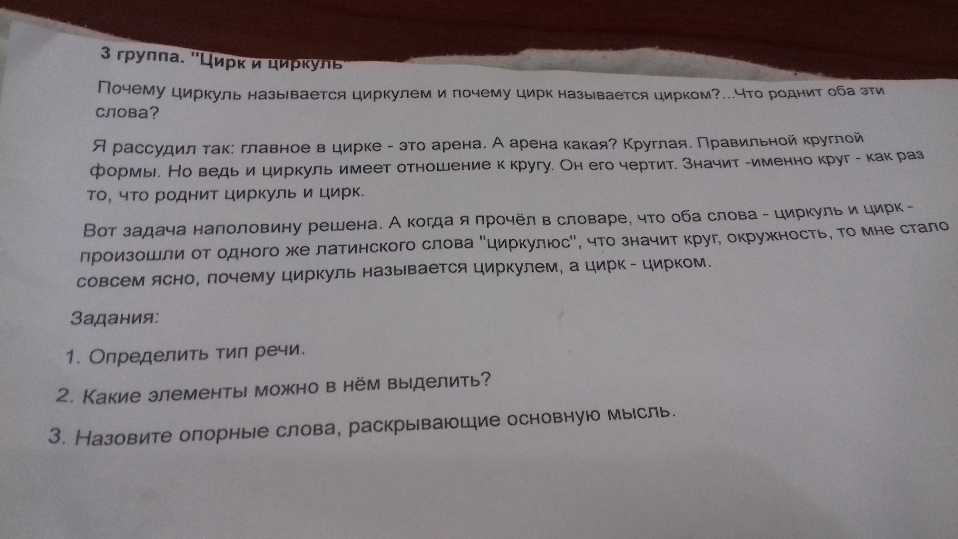3) Опорные слова: цирк, циркуль, "циркулюс", круг