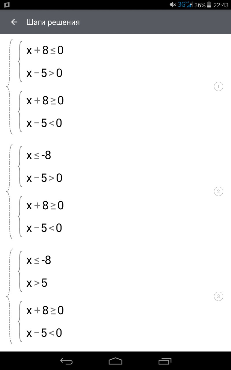 Ответ: x∈(-∞;-8]∪(5;+∞)