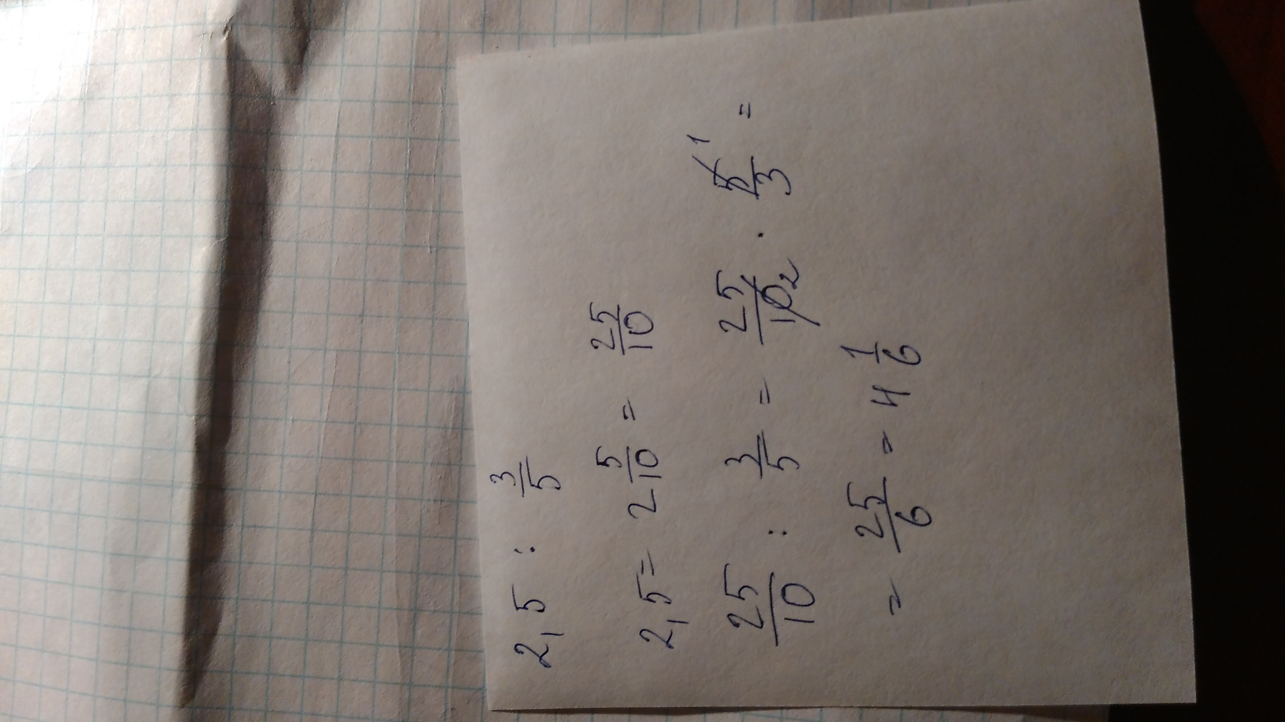 2 1/2 ÷ 3/5= 5/2×5/3=25/6=4 1/6