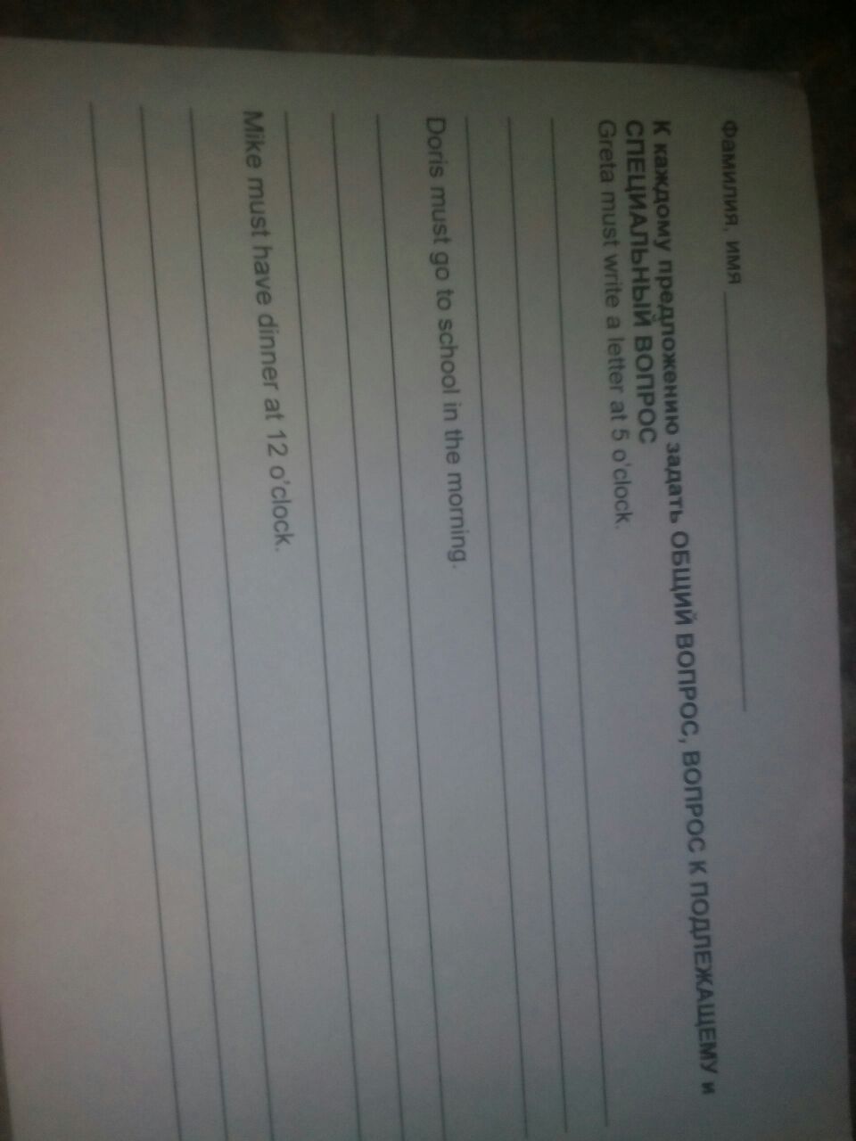 Who must write a letter at 5 o'clock?