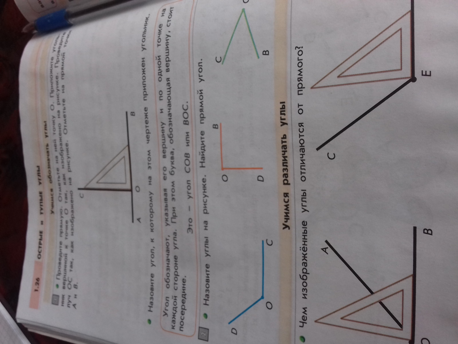 DOC тупой угол; DOB ПРЯМОЙ УГОЛ; COB острый угол.
