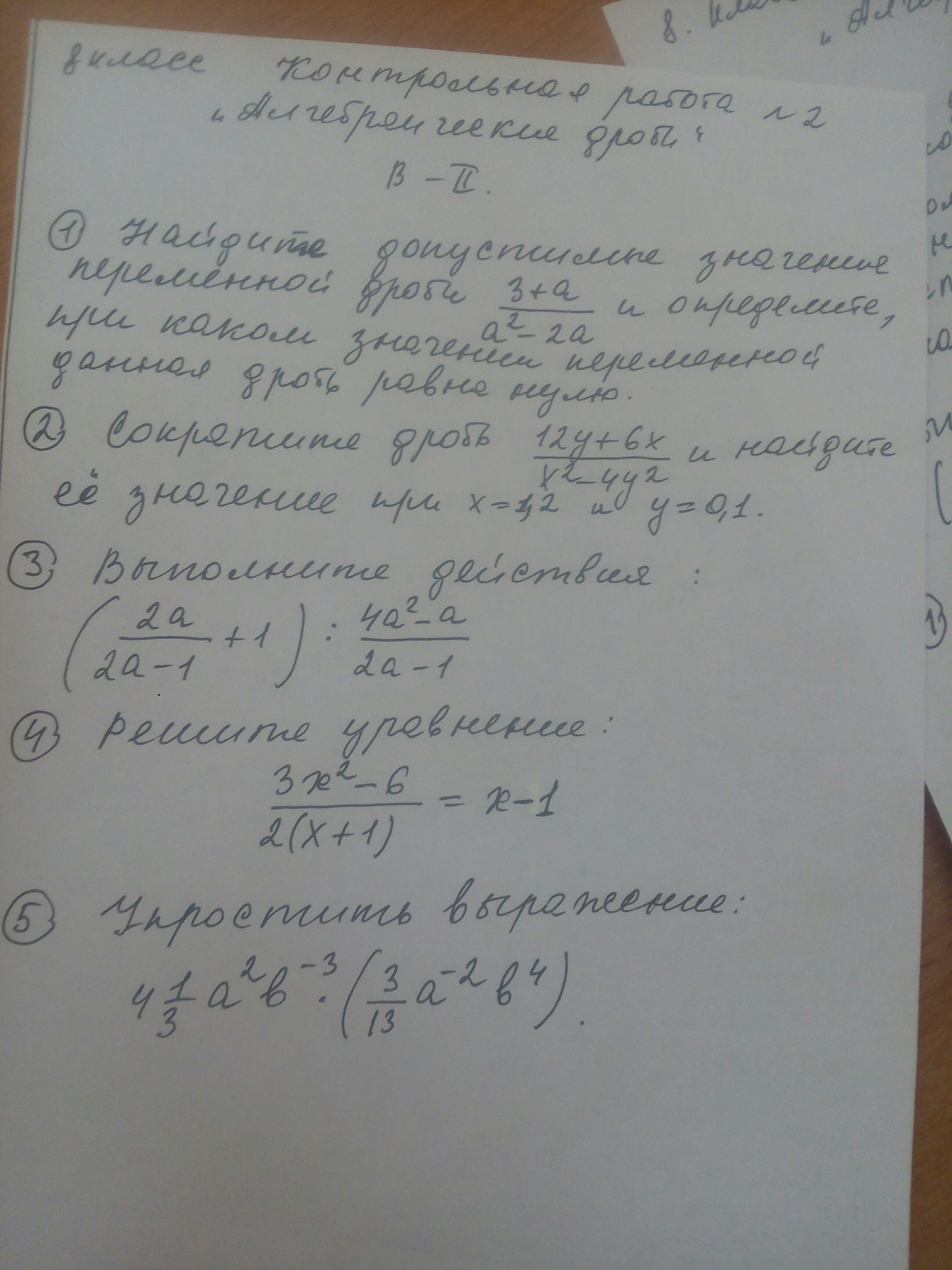 left(frac{2a}{2a-1}+1right):frac{4a^2-a}{2a-1}\1);frac{2a}{2a-1}+1=frac{2a+2a-1}{2a-1}=frac{4a-1}{2a-1}\2);frac{4a-1}{2a-1}:frac{4a^2-a}{2a-1}=frac{4a-1}{2a-1}cdotfrac{2a-1}{4a^2-a}=frac{4a-1}{2a-1}cdotfrac{2a-1}{a(4a-1)}=frac1a\\4.;frac{3x^2-6}{2(x+1)}=x-1\3x^2-6=2(x-1)(x+1)\3x^2-6=2(x^2-1)\3x^2-6=2x^2-2\x^2=4\x=pm2