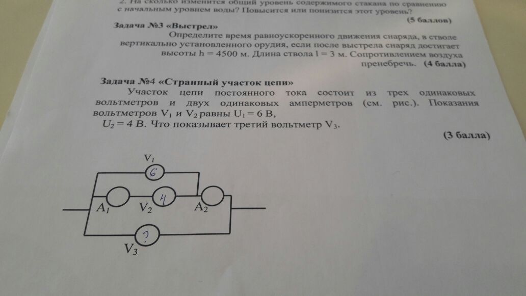 Так как показагнияч вольтметров с 1 и 2 равны,следовательно,это-параллельное соединение цепи,то есть,показания третьего вольтметра будут ,как и двух предыдущих,равны х числу