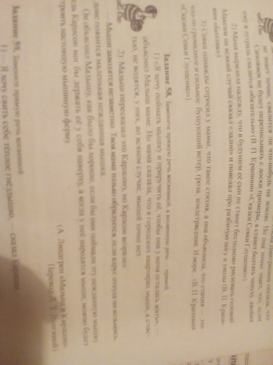 2) Когда малыш пересказал это Карлсону,то Карлсон возразил : "Мыши заводятся незаметно.Твоя мама только обрадуется,если вдруг,откуда ни возьмись, в доме появится маленькая нежданная мышка".