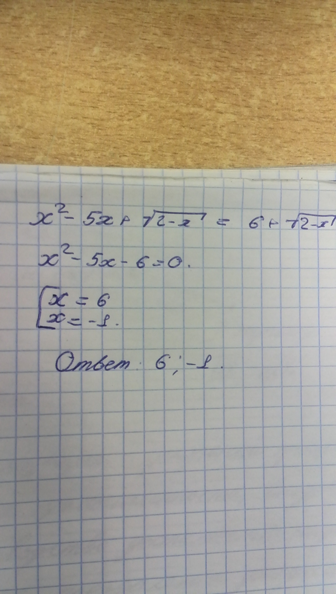 x^2 - 5x + √(2-x) - 6 - √(2-x) = 0