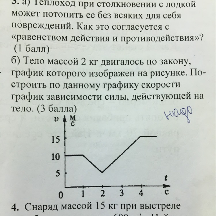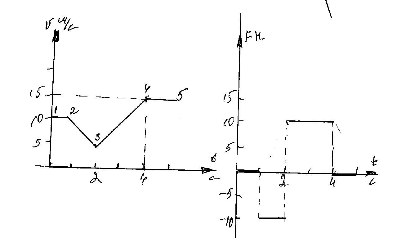 НА УЧАСТКЕ 23 (см. рис) a=(5-10)/1=-5 м/с² F2=2*(-5)=-10H