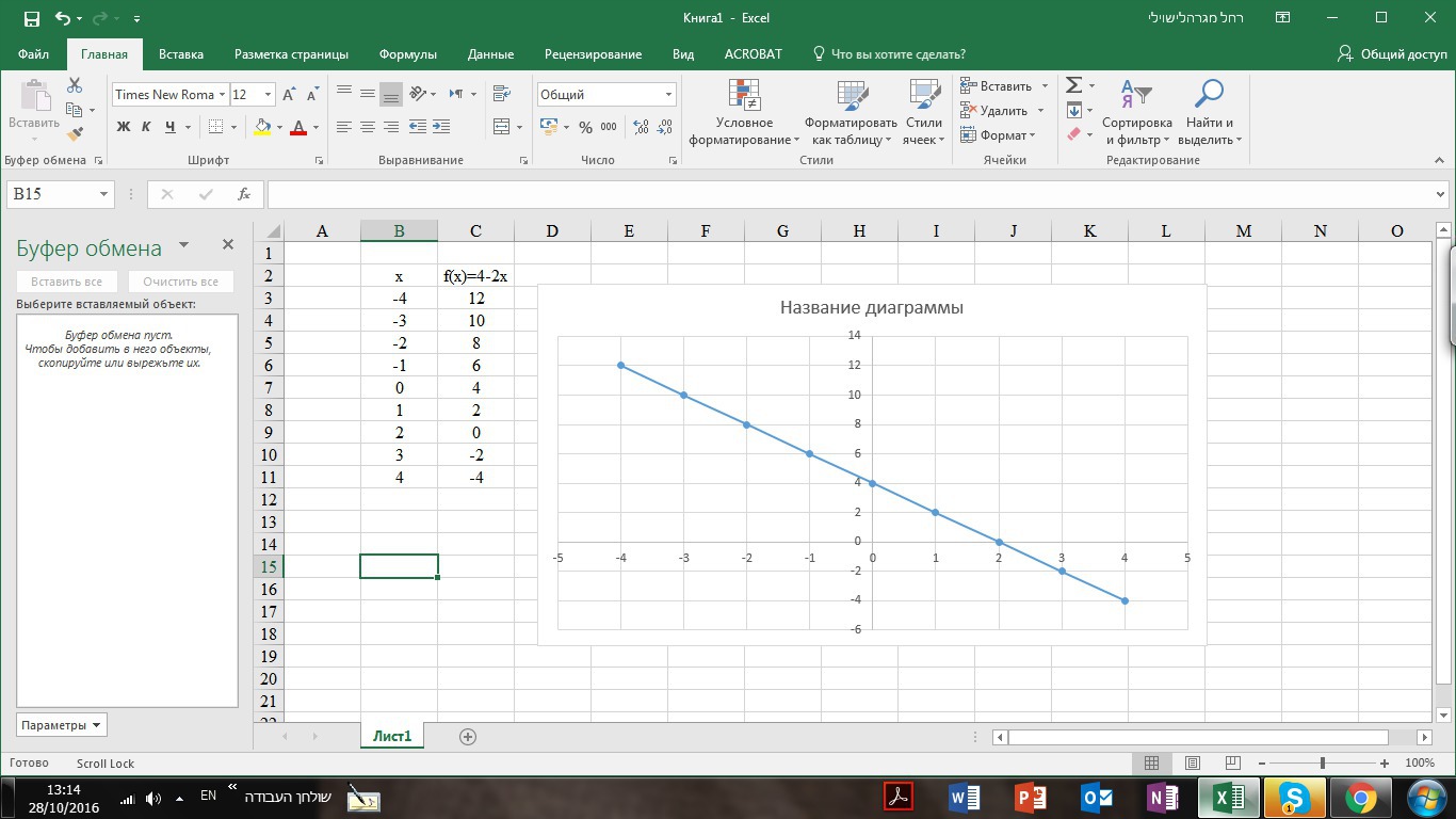 3) Какое значение принимает функция при значении х, равном -2;0;4?