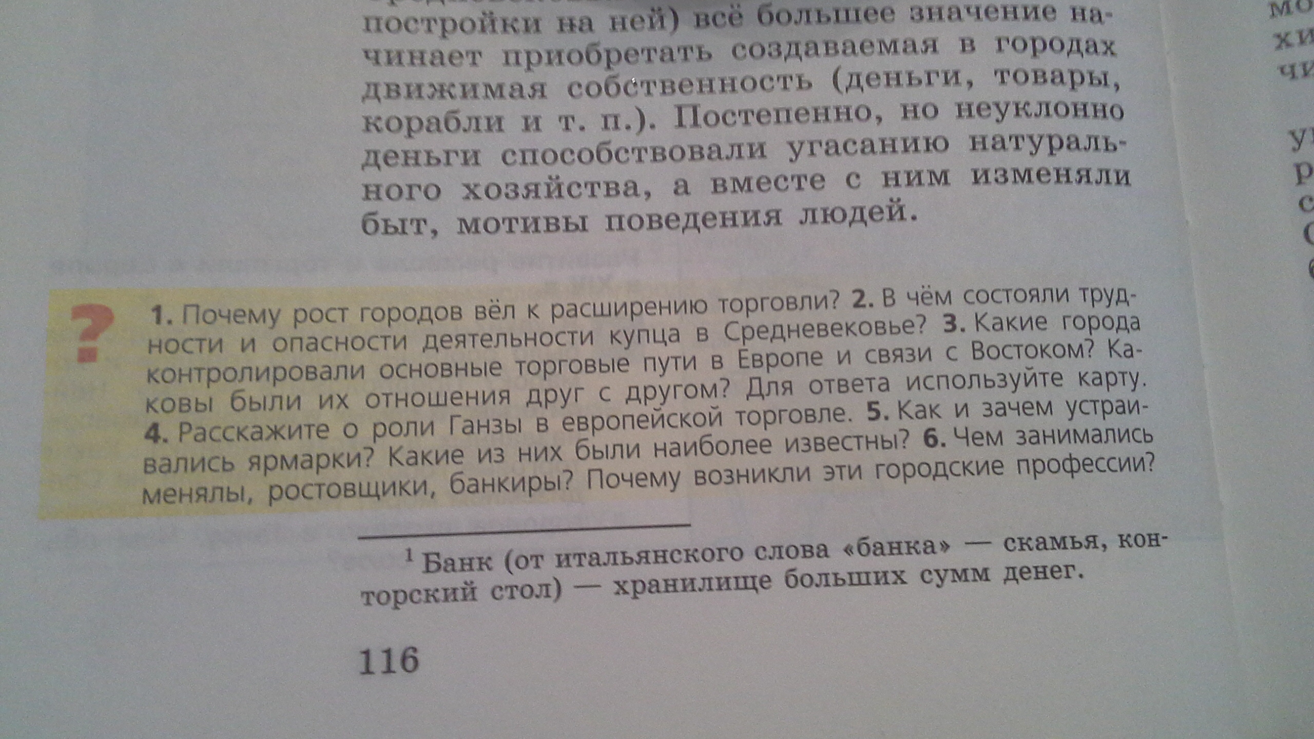 1. В каждом городе обязательно были торговцы и ремесленники, которым было необходимо продавать свой товар. Тем самым появлялся город - росла торговля. 2. Купцов было достаточно много, поэтому каждый старался быть лучшим среди других, также купцов часто грабили, что было опасно дня них. 3. Греция,