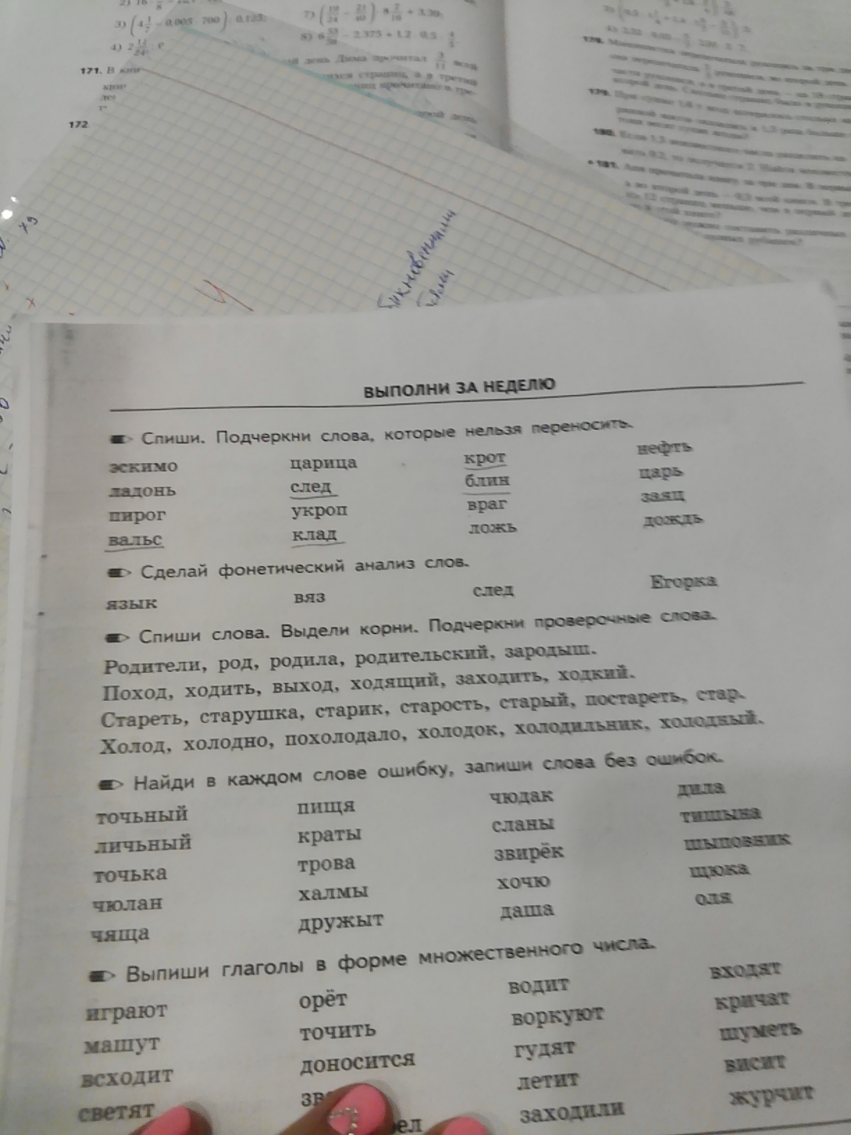 подчеркни слова, которые нельзя переносити эскимо ладонь пирог вальс царица след укроп