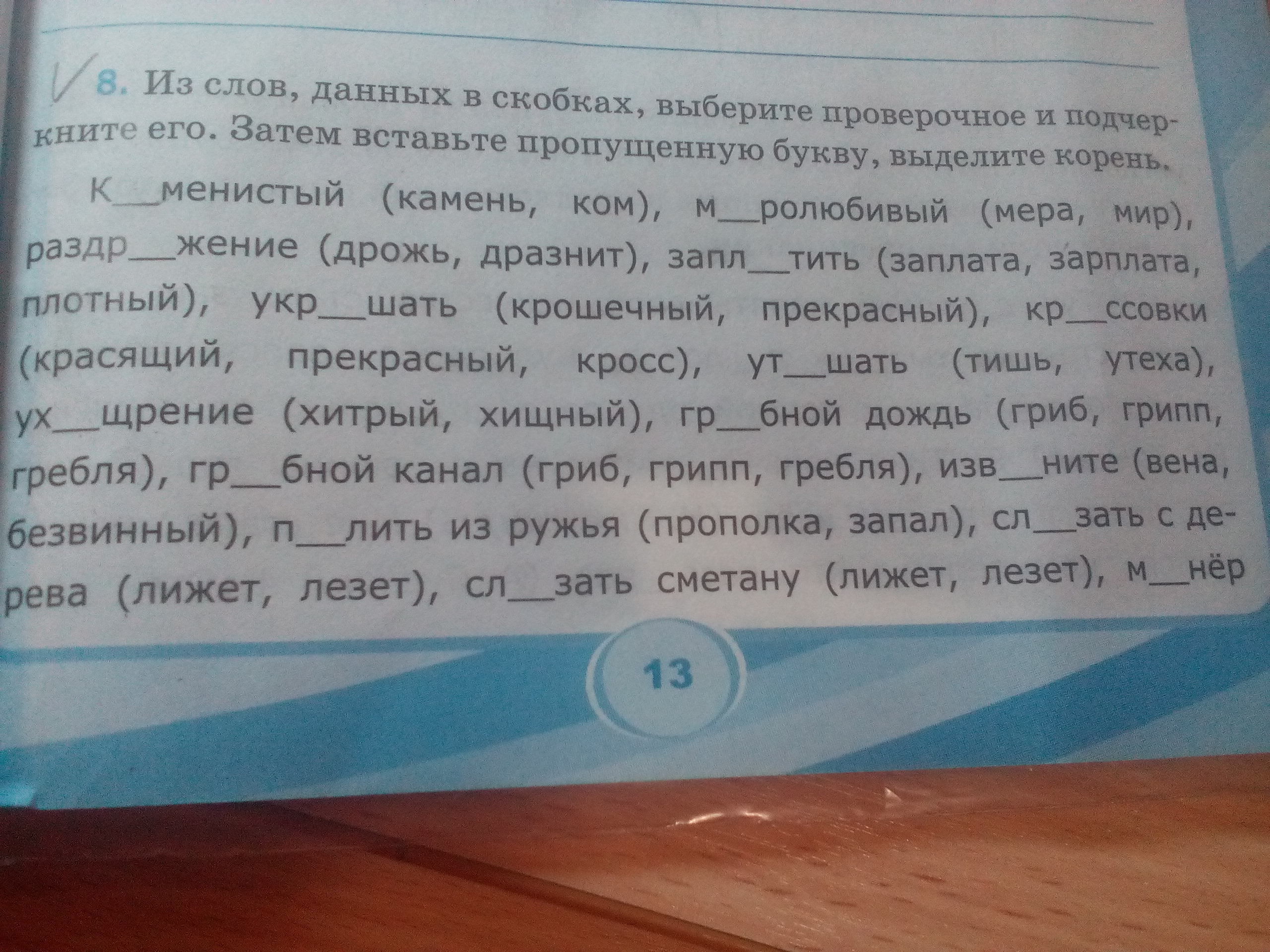 Каменистый-камень,миролюбивый-мир,раздражение-дразнит,заплатить-зарплата,укрошать-крошечный,кроссовки-кросс,утешать-утеха,ухищрение-хитрый,грибной дождь-гриб,гребной канал-гребля,извините-безвинный,палить из ружья-запал,слезать с дерава-лезет,слизать сметану-лижет,минер-мина,краевой-край,проводить время на катке-катит,показание-показывать,раскапать клад-капать.