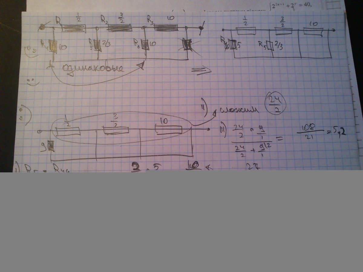 Определите общее сопротивление цепи, изображенной на рисунке , если R1=1/2 Ом, R2=3/2 Ом, R3=R4=R6=1 Ом, R5=2 Ом.