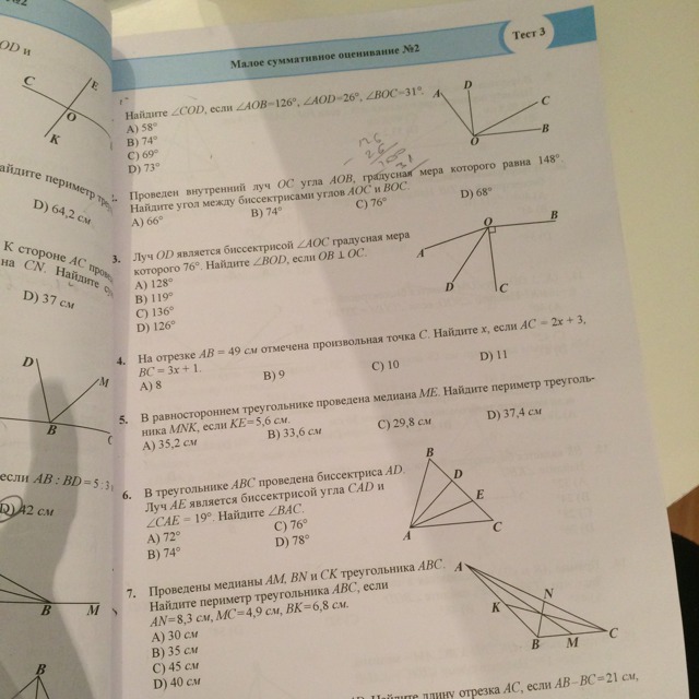 6)С (так как АЕ-биссектриса треугольника САD, то угол CAD=19*2=38; так как АD-биссектриса треугольника ВАС, то угол ВАС=2*38=76);