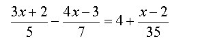 (7(3x+2) -5(4x -3))/35 -(x-2)/35 =4