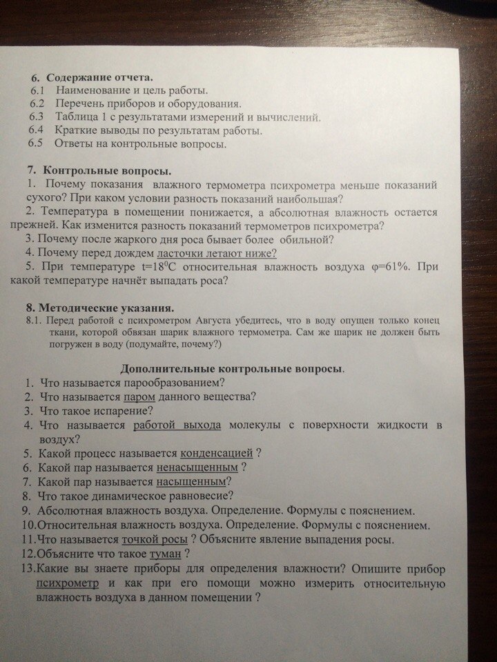 2) Разность показаний термометров уменьшится при понижении температуры. Может наступить момент, когда оба термометра будут показывать одинаковое значение температуры. При понижении температуры воздух способен удерживать все меньшее количество пара воды. Если абсолютная влажность не меняется, то при понижении температуры может наступить точка росы, когда лишняя влага в воздухе буде выпадать в виде каплей тумана.