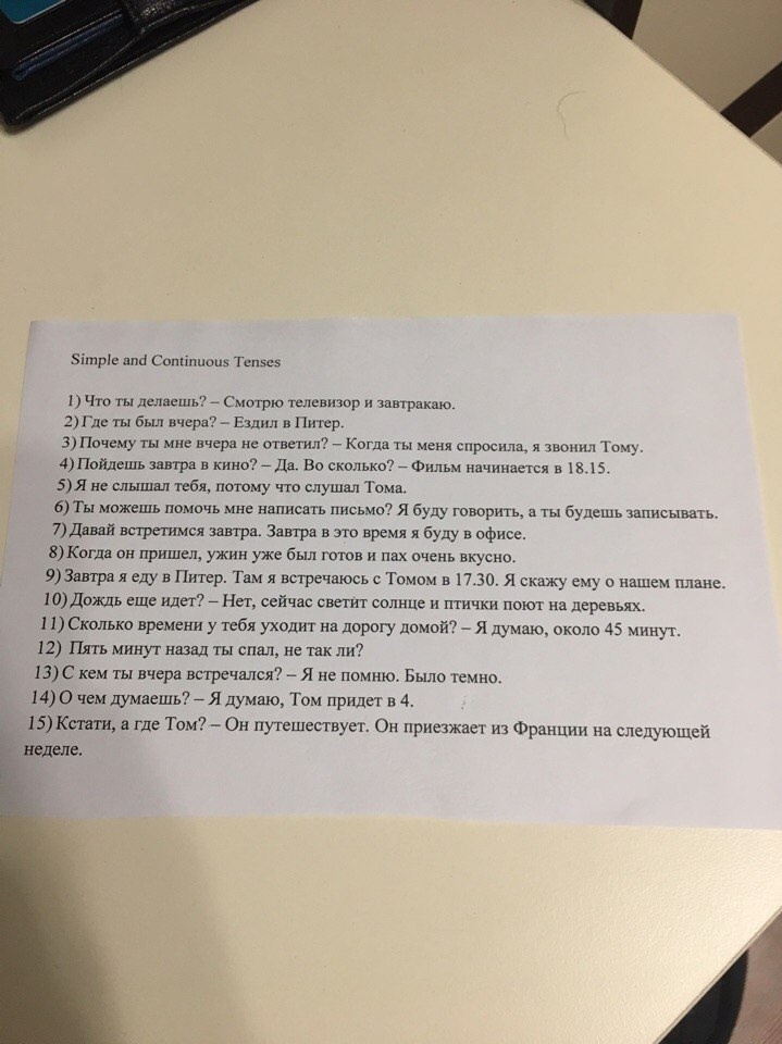 9) I will go to Petersburg tomorrow. There I meet with Tom at 17.30. I will tell him about our plan.