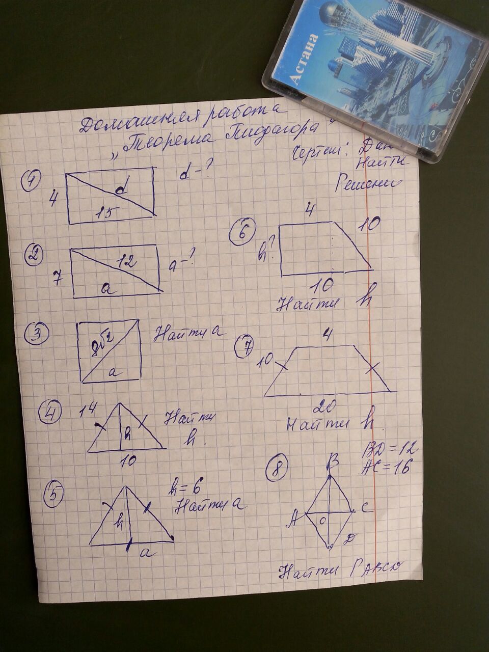 1) д^2=4^2+15^2=16+225=241 д= квадратный корень из 241