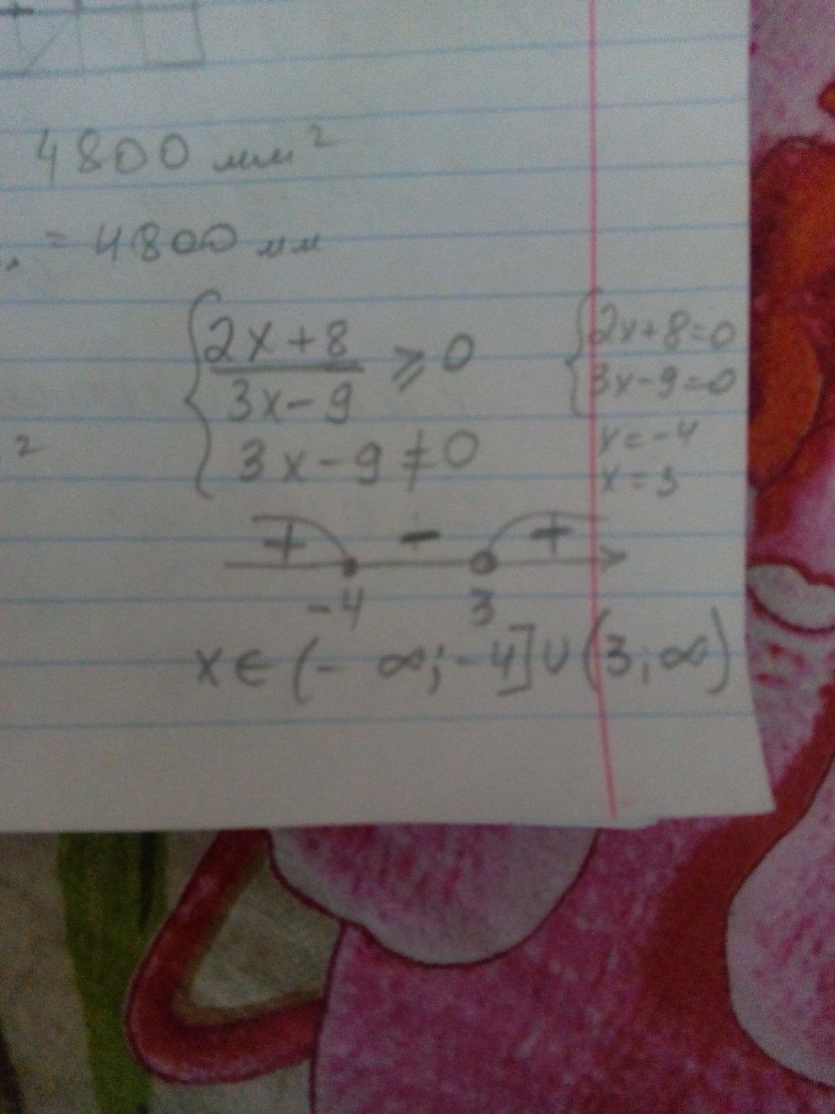 х принадлежит (- бесконечность;-4]U(3;+бесконечность)