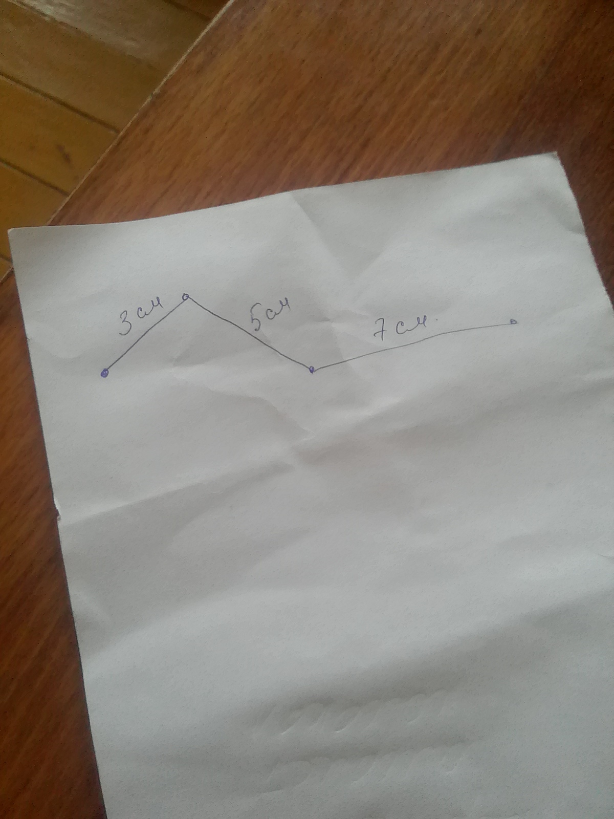 Постройте ломаную линию, звенья которой равны 3 см; 5 см; 7 см. Найдите длину всей ломанной линии.