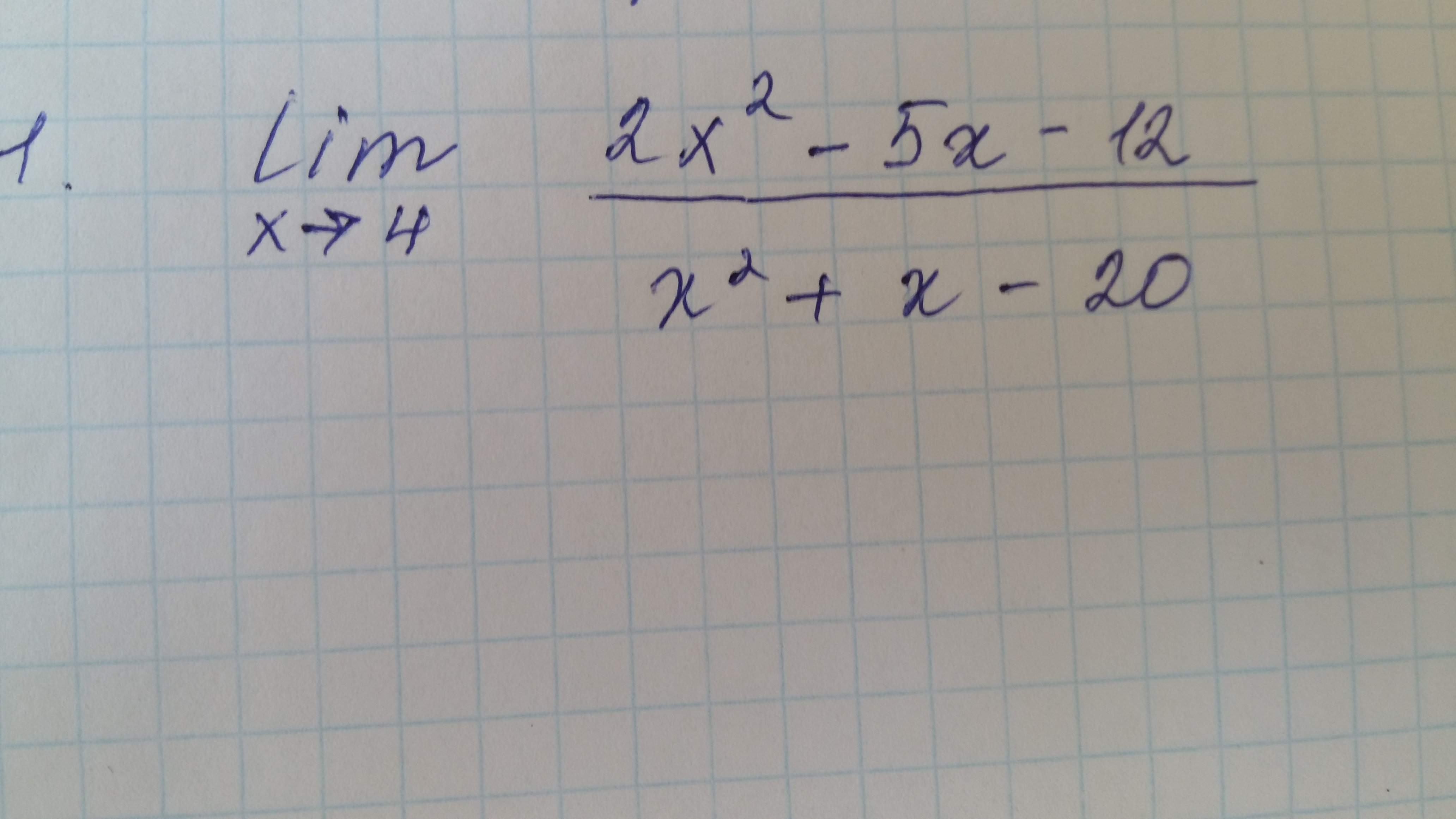 lim x--> 4 [(2x² - 5x - 12) / (x² + x - 20)] ;
