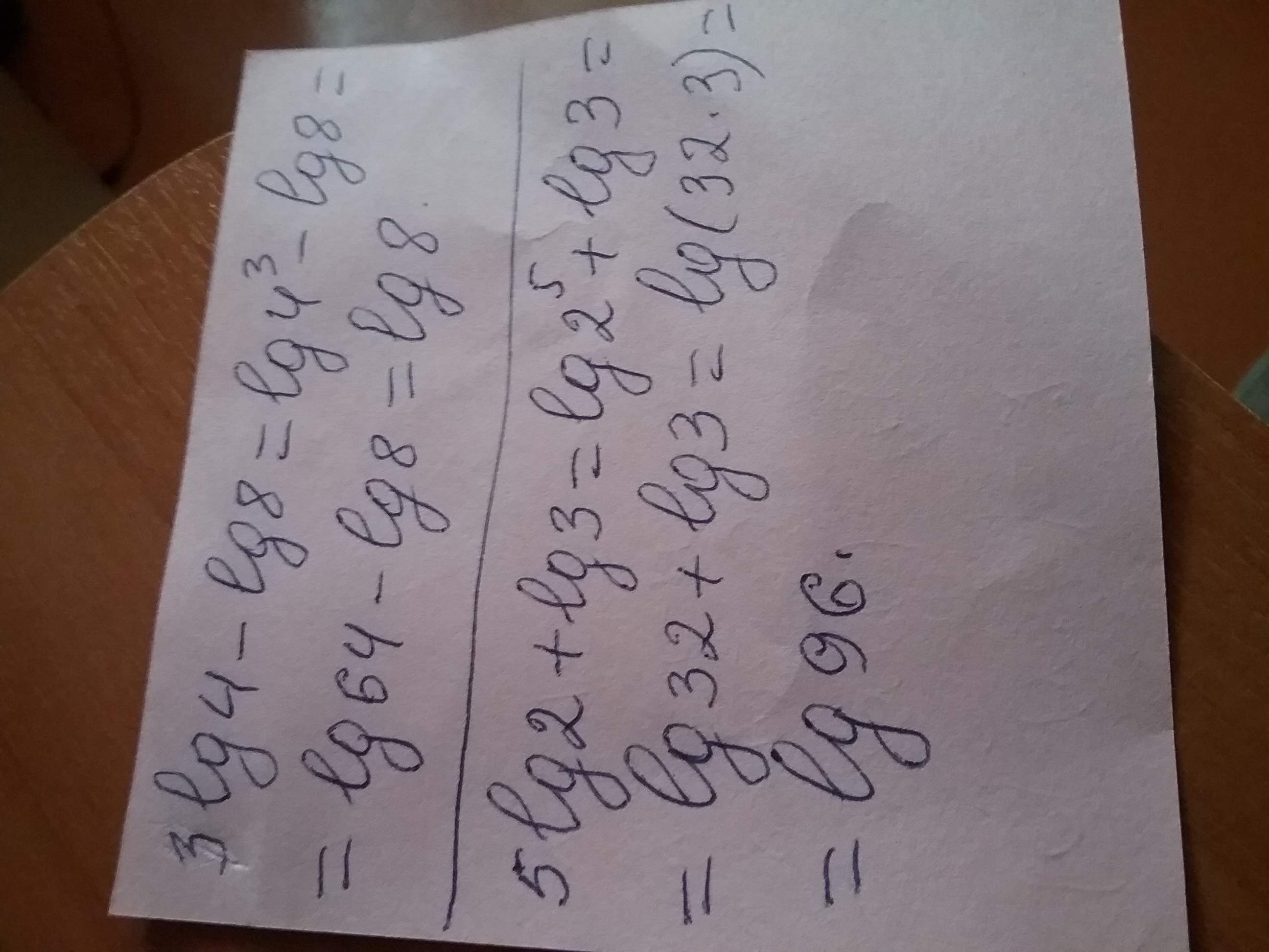 Логарифм. 3lg 4 - lg 8 (ребят без степеней, помогите как решать ) И вот ещё один 5lg 2 + lg 3. Как решить их ? Очень прошу помогите ребят ;) Зарание спасибо ;)