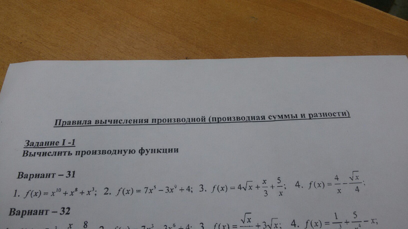 1) f(x)=x^{10}+x^8+x^3,\f'(x)=left(x^{10}+x^8+x^3right)'=left(x^{10}right)'+left(x^8right)'+left(x^3right)'=\=10x^{10-1}+8x^{8-1}+3x^{3-1}=10x^9+8x^7+3x^2;\\2) f(x)=7x^5-3x^9+4,\f'(x)=left(7x^5-3x^9+4right)'=left(7x^5right)'-left(3x^9right)'+4'=\=7left(x^5right)'-3left(x^9right)'+0=7cdot4x^{5-1}-3cdot9x^{9-1}=28x^4-27x^8;\\3) f(x)=4sqrt x+frac{x}{3}+frac{5}{x},