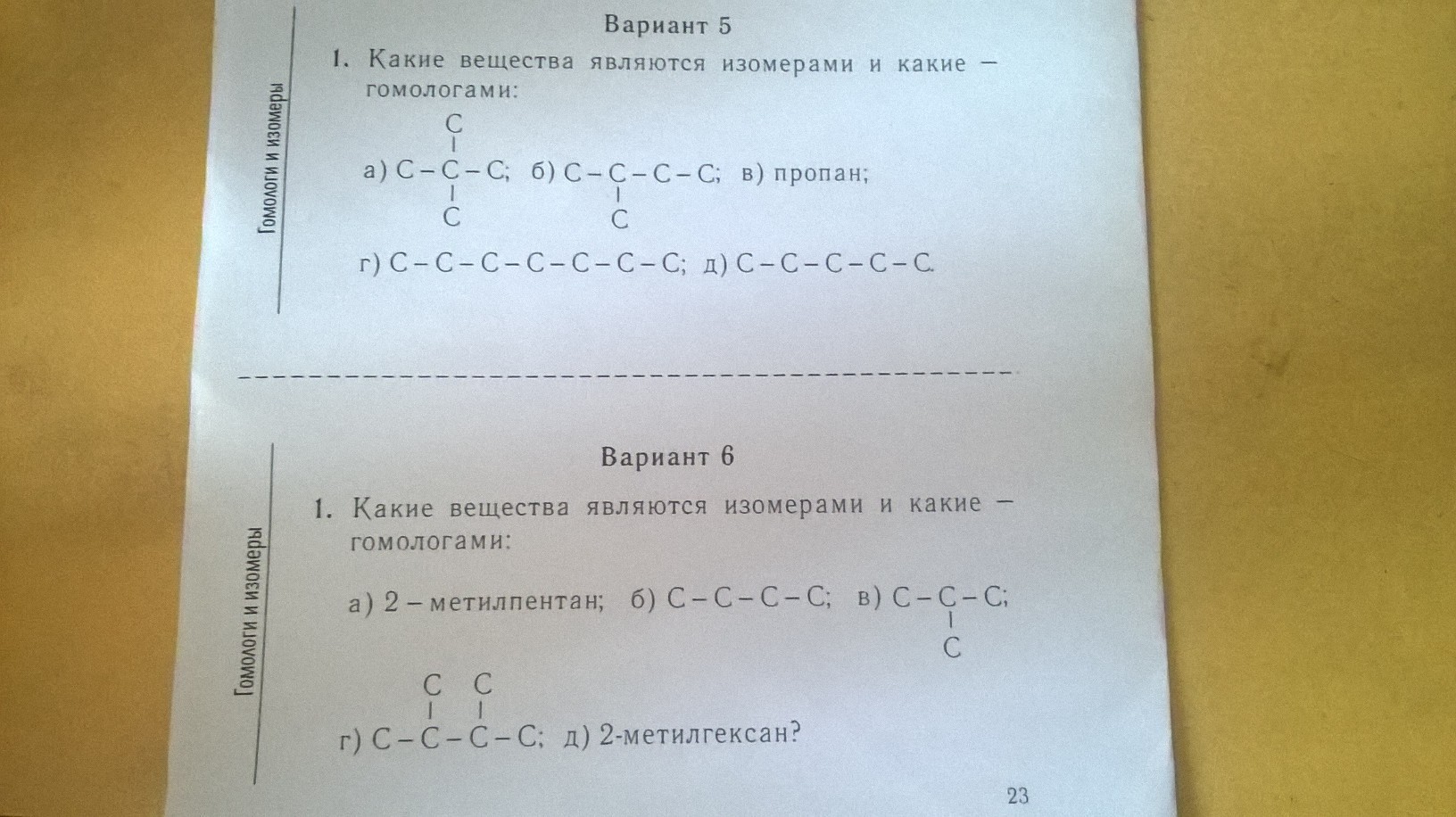 Вариант 5 (1). Какие вещества являются изомерами и какие гомологами(см.фото)