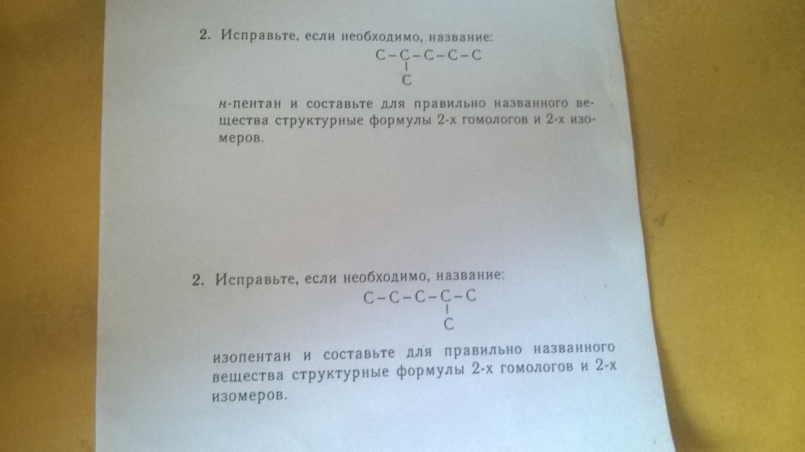 н-пентан и составьте 2 изомера и 2 гомолога