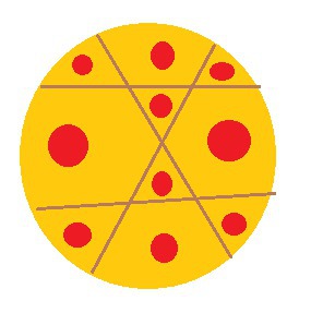 Круглый торт разрезать с помощью четырёх прямолинейных разрезов так,мчто на каждом куске оказалось ровно одна розочка. Могли на торте быть ровно 10 розочек?