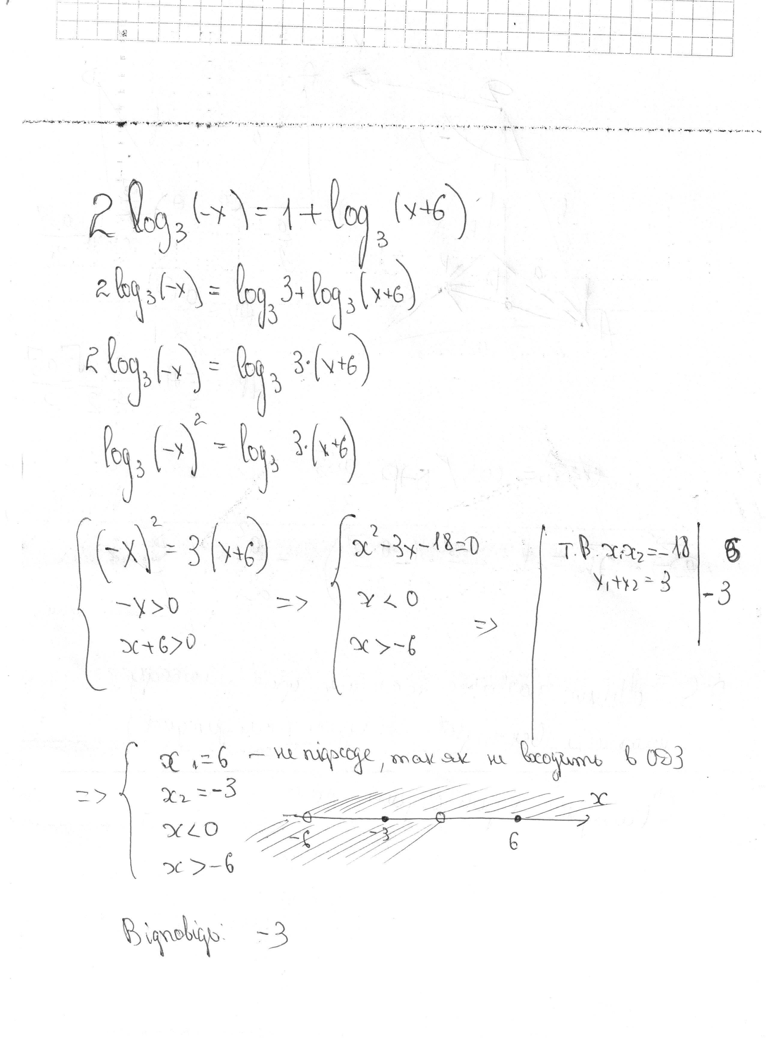 як розвязать таке логарифмічне рівняння 2loq3(-x)=1+log3(x+6) тільки 3 має бути менше і знизу як показник