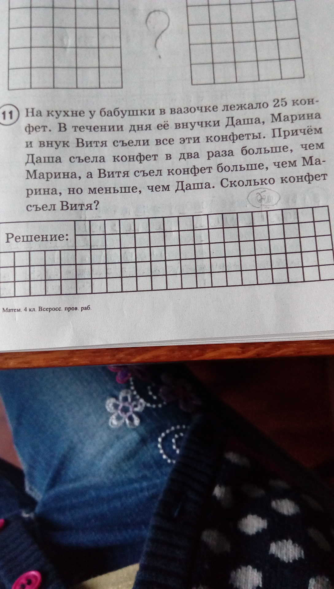 Даша сьела 12 конфет, Марина 6, а Витя 7