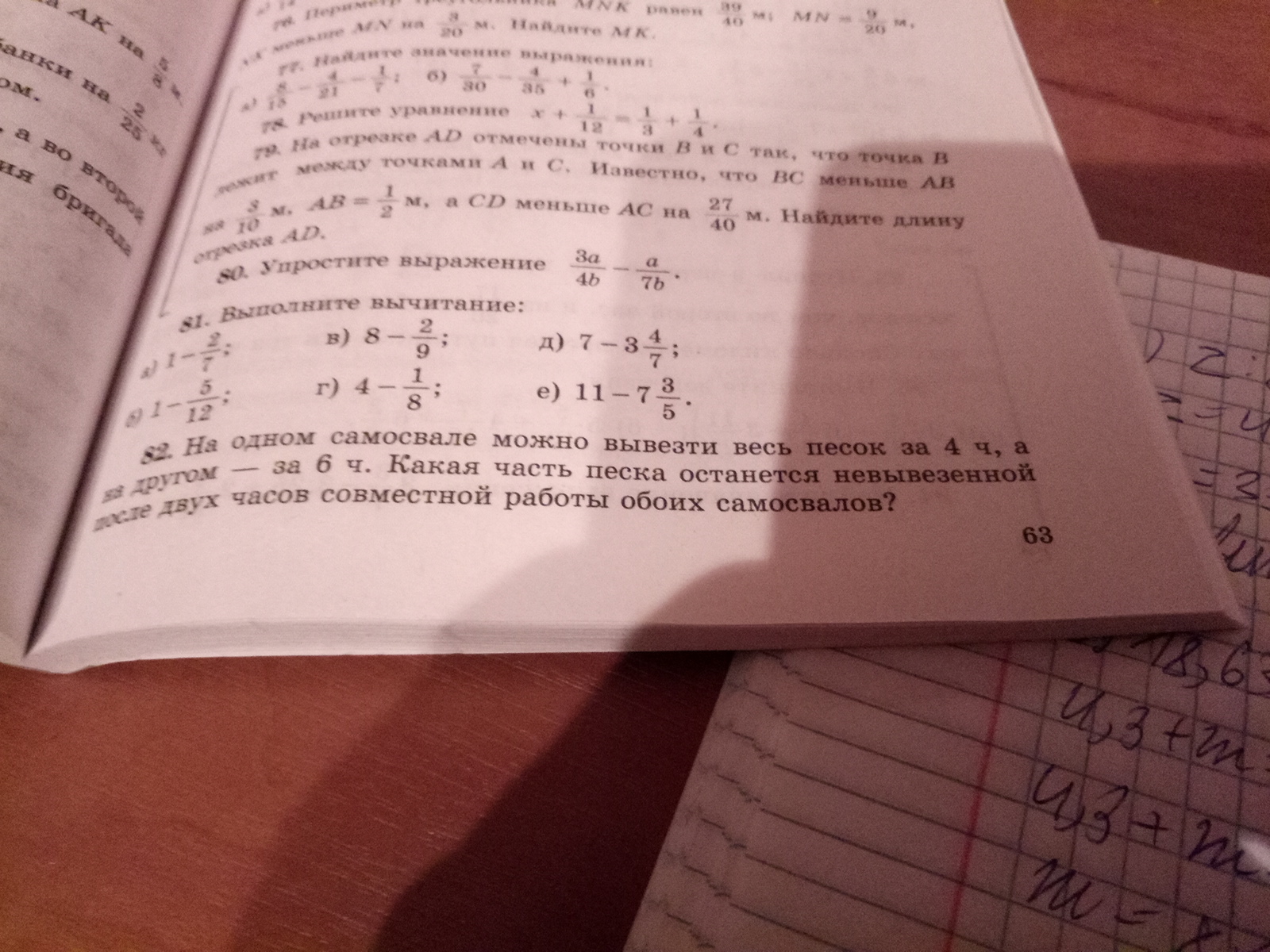 3) 1-5/6=1/6 часть песка осталось вывезти