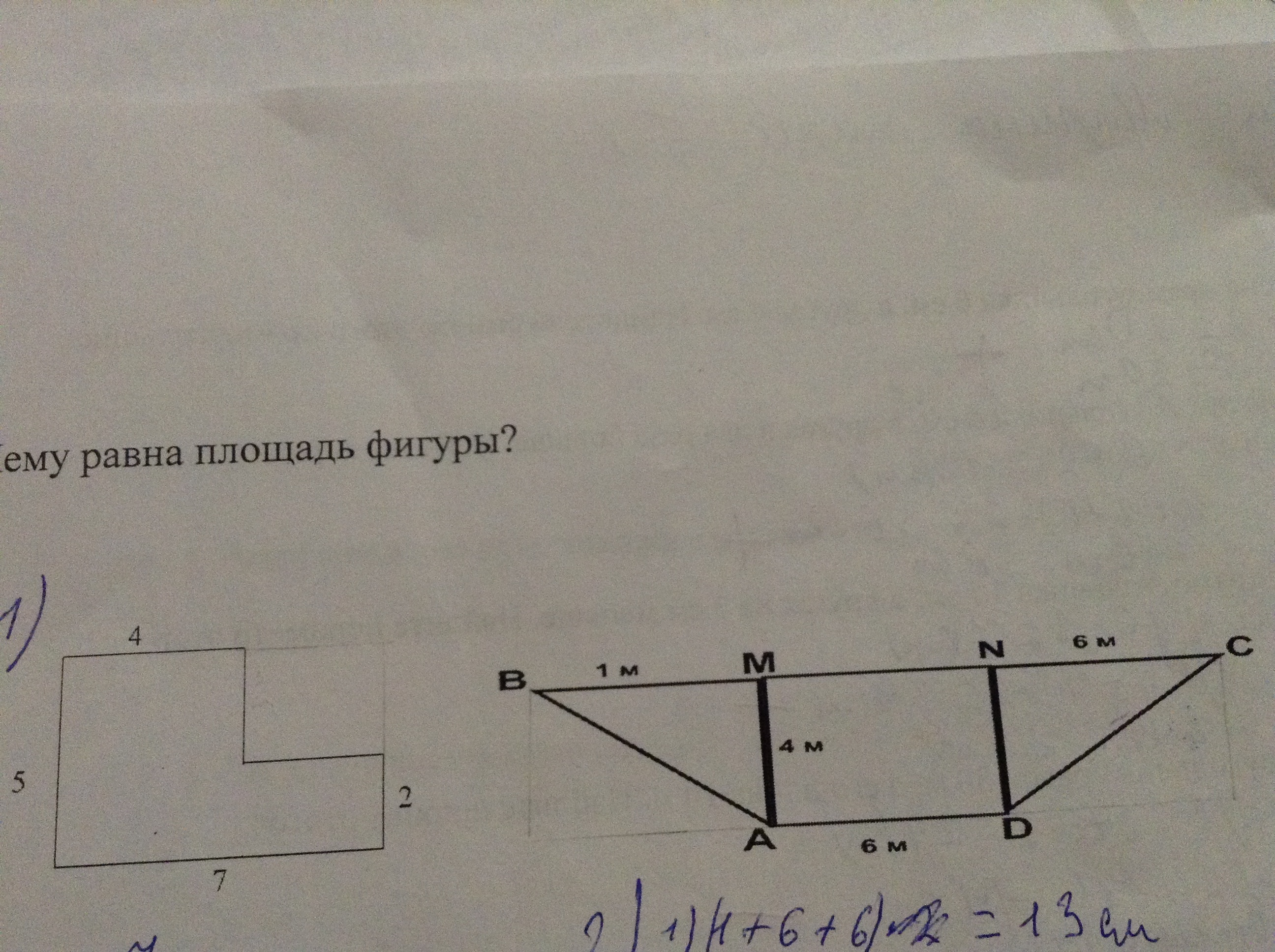 6*4 + (4*1)/2 + (4*6)*2 = 24 + 2 + 12 = 38 м² - ОТВЕТ