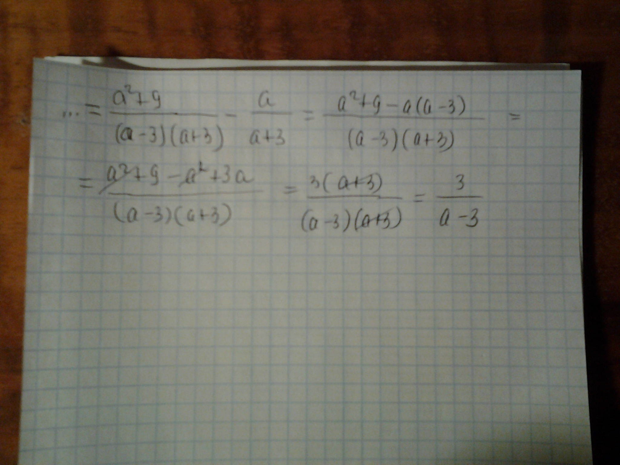 =(a² +9 -a(a -3)) /(a -3)(a +3) =