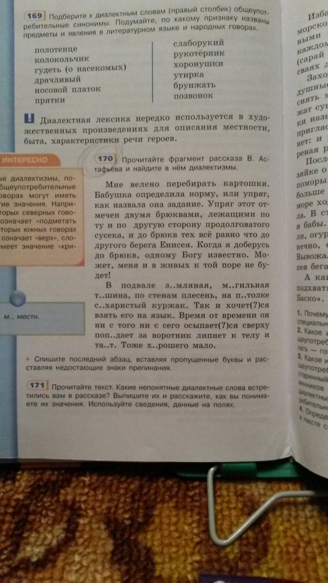 Прочитайте фрагмент рассказа В. Астафьева и найдите в нём диалектизмы