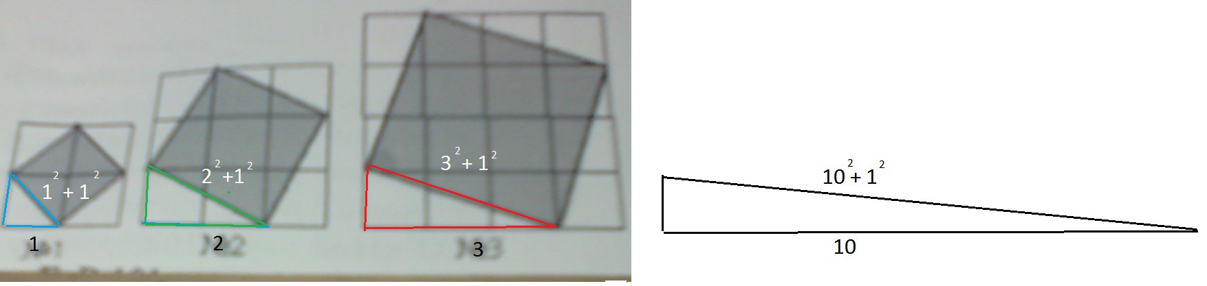 На рисунке на клеточной бумаге с клетками одинаковых размеров изображены закрашенные фигуры, площади которых превосходят площадь одной клетки на фигуре 1 в 2 раза, на фигуре 2 в 5 раз, на фигуре 3 в 10 раз. Во сколько раз превосходит площадь 10-й закрашеной фигуры, построенной по тому же правилу, что и фигуры1, 2, 3? Плиз помогите!!!!