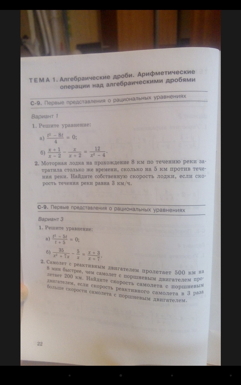 х собственная скорость лодки, х+3 скорость по течению, х-3 скорость против течения,8/(х+3)время движения по течению, 5/(х-3) -- против течения, учитывая условие задачи, имеем уравнение 8/(х+3)=5/(х-3), х не равняется -+3.