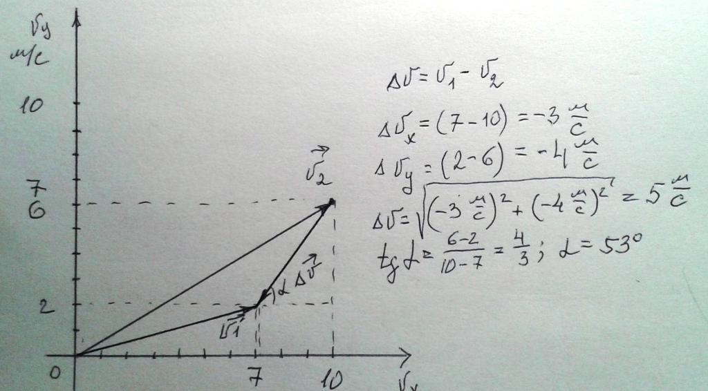 Мышка убегает от кота в соответствии с уравнениями: x1=5+7t, y1=-2+2t ; а кот догоняет мышку в соответствии с уравнениями: x2=-15+10t, y2=-4+6t. Определить скорость мышки относительно кота.