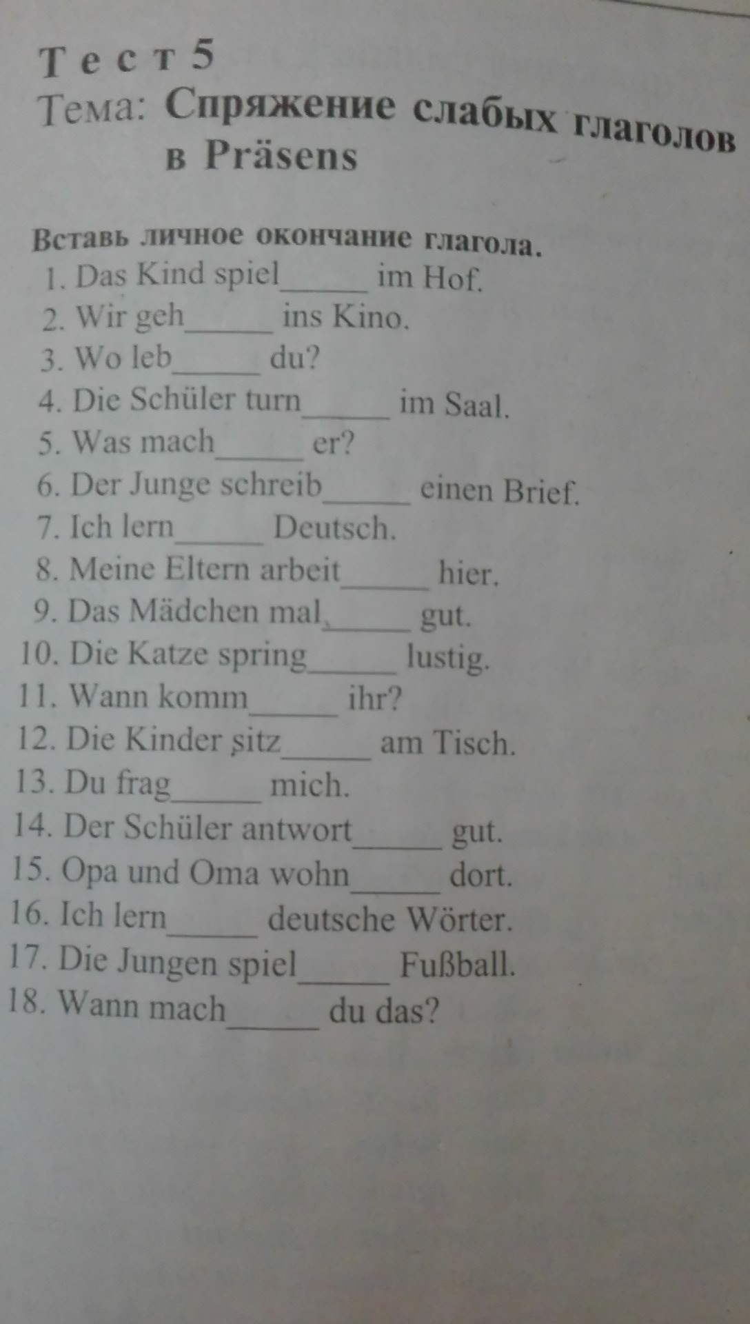 1 spielt 2 gehen 3 lebst 4 turnen 5 macht 6 schreibt 7 lerne 8 arbeiten 9 malt 10 springt 11 kommt 12 sitzen 13 fragst 14 antwortet 15 wohnen 16 lerne 17 spielen 18 machst