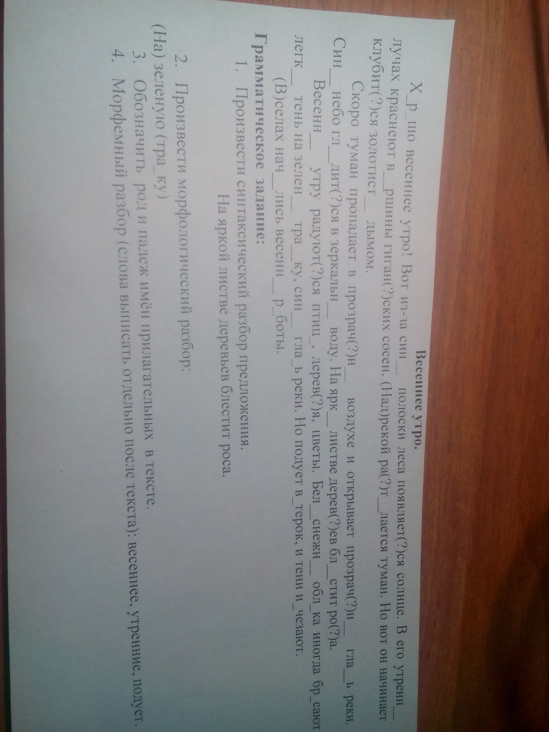 на яркой листве деревьев блестит роса-на предлог,яркой прил. определение,деревьев сущ. дополнение,блестит глагол сказуемое,роса сущ. подлежащие.