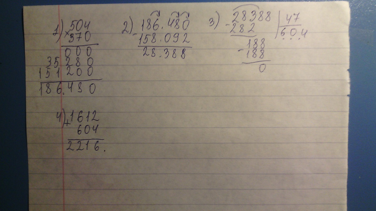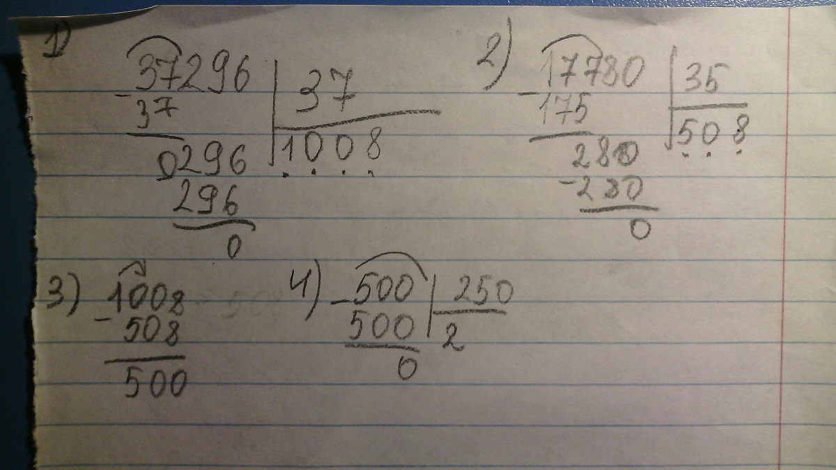 Решение первого примера записано карандашом, второго - ручкой. Номера действий указаны.