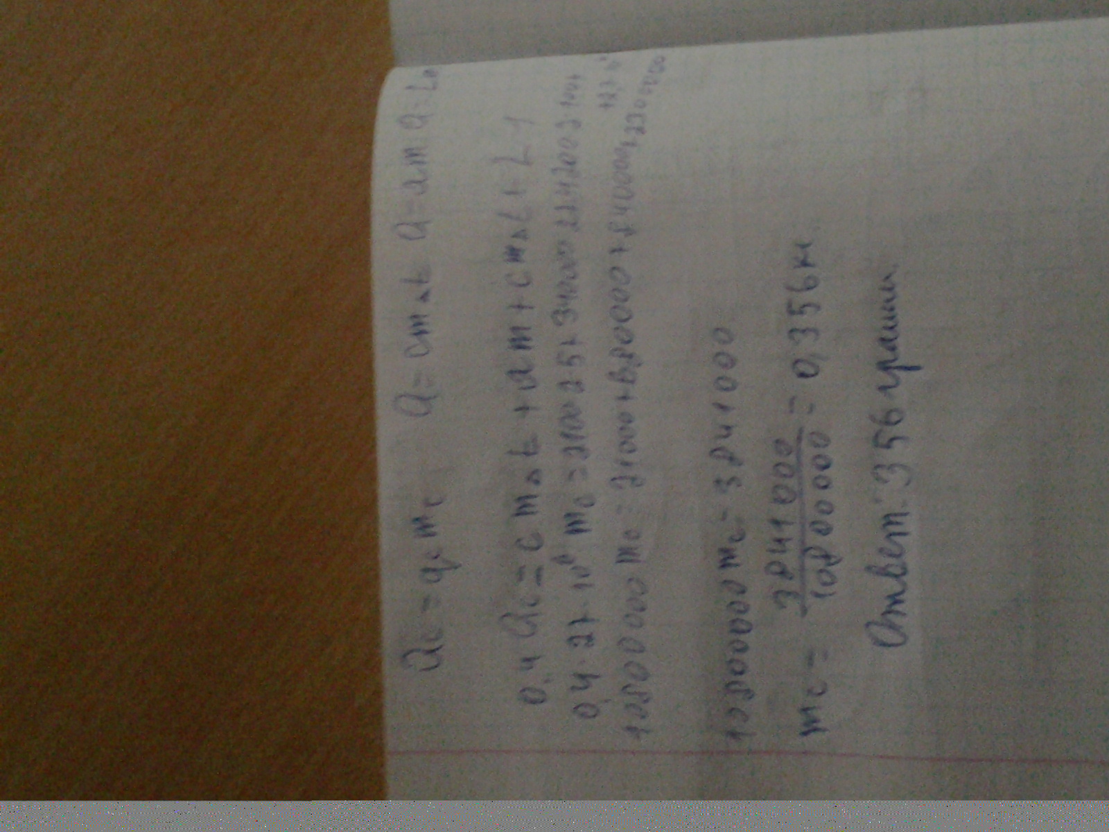 0.4Q1=Q2+Q3+Q4+Q5 Q1=m1q теплота при сгорании спирта