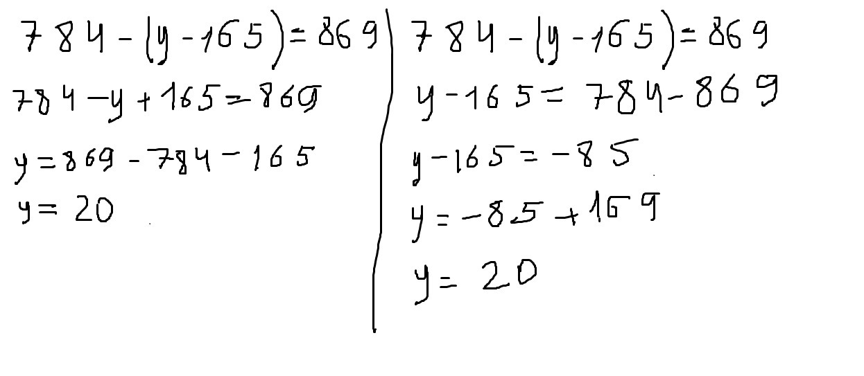 1) 784-(у-165)=869