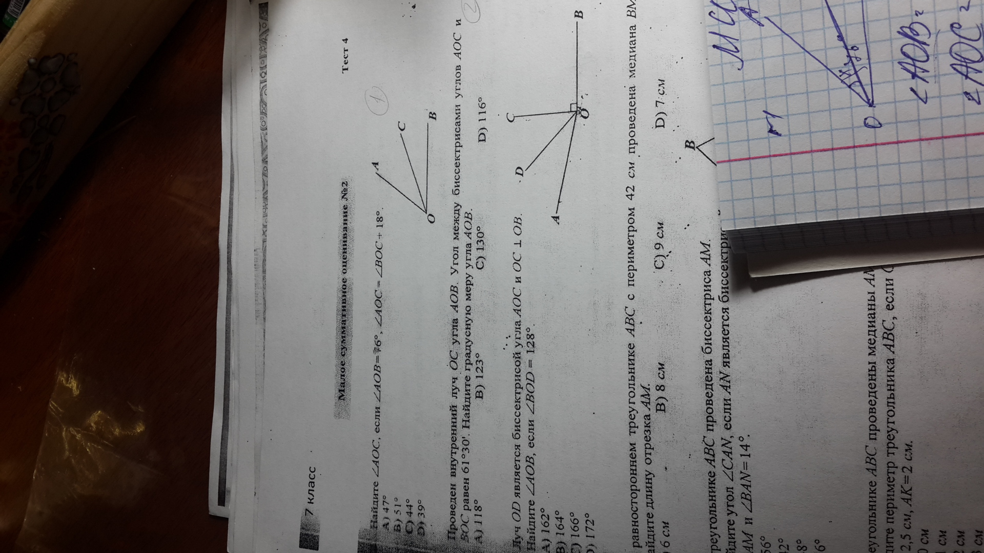 1-D потому что АОВ=76 отсюда следует АОС= 79:2= 39градусов