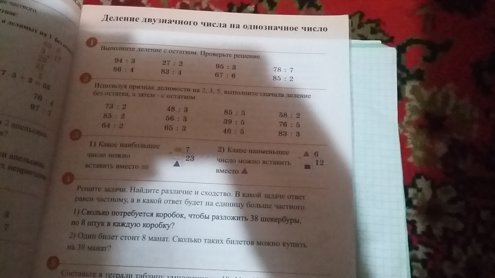 А проверить можно так: сначала умножаем делитель на частное, и это число отнимаем от делимого. Если получился остаток, значит все правильно. Ну к примеры возьмем первый пример: