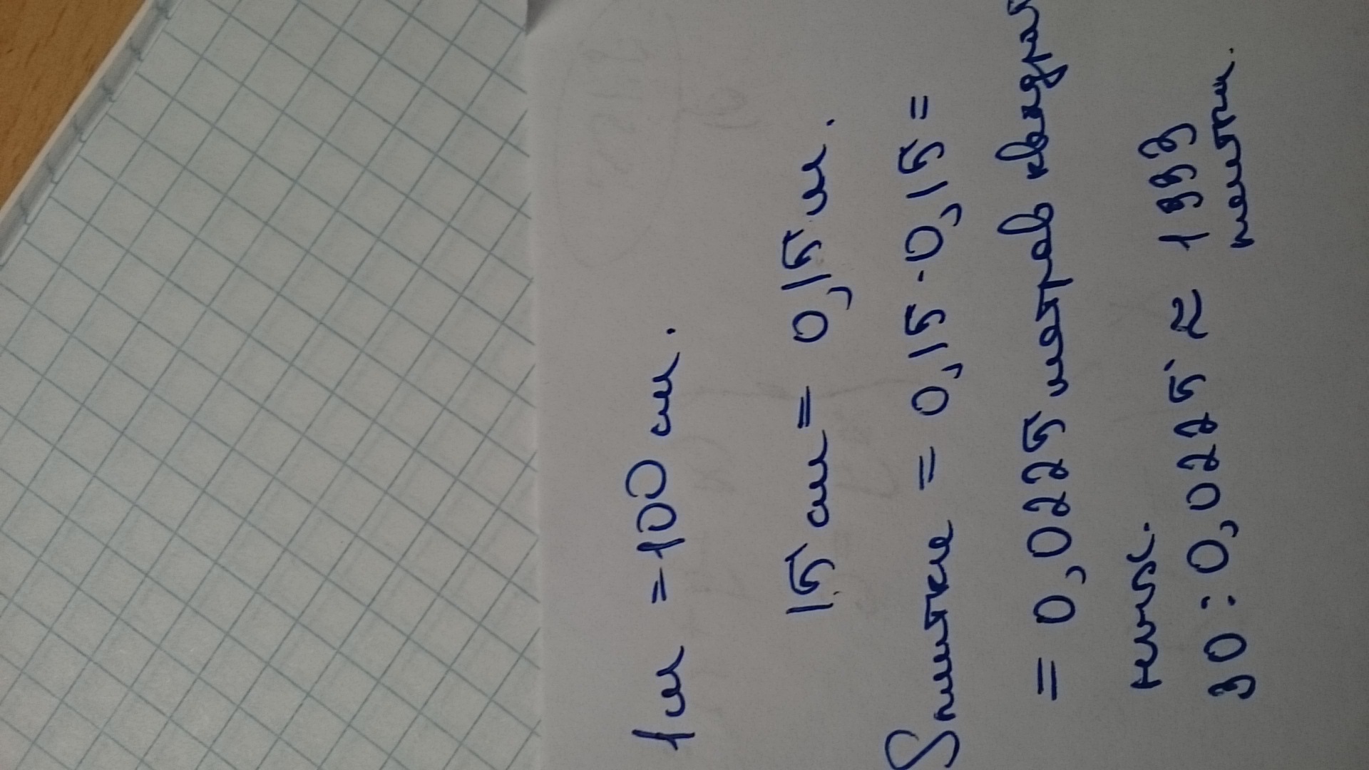 Требуется уложить плитками стену площадью 30 кв.метров.Сколько потребуется плиток,если плитка квадратная и её сторона равна 15 см?