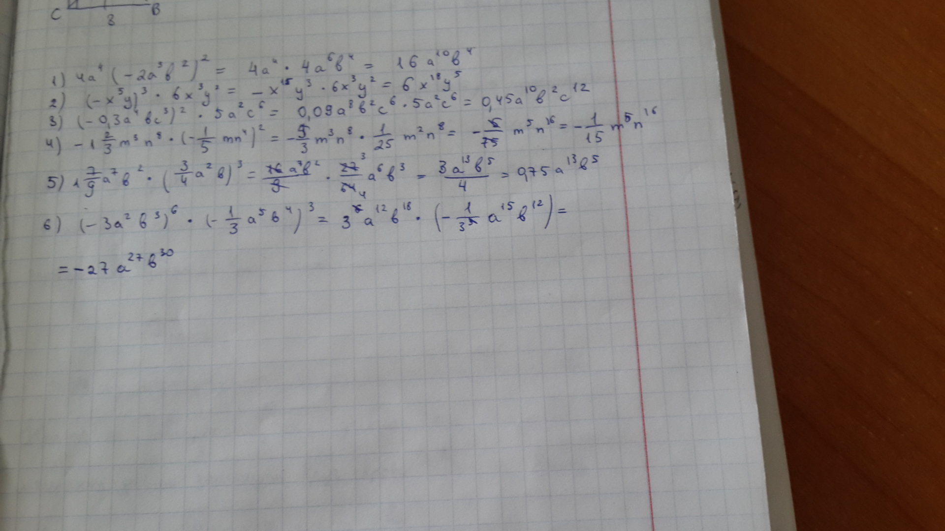 Выполнить умножение одночленов:1)12pk^3*(-3p^4 k^2) 2)0,8a^2 b^3*2,5ab 3)-4,6x^3 y^5*0,5x^4 y^2 4)0,27a^3 b^2 c^6*3 1/3a^2 b^5 c^12 5)-14x^7 yz^2* 1 2/7x^2 y^9 z^5 6)3/4x^4 y*(-6z^2 y^3)*1,5x^2 z^8 (хотя бы половину)
