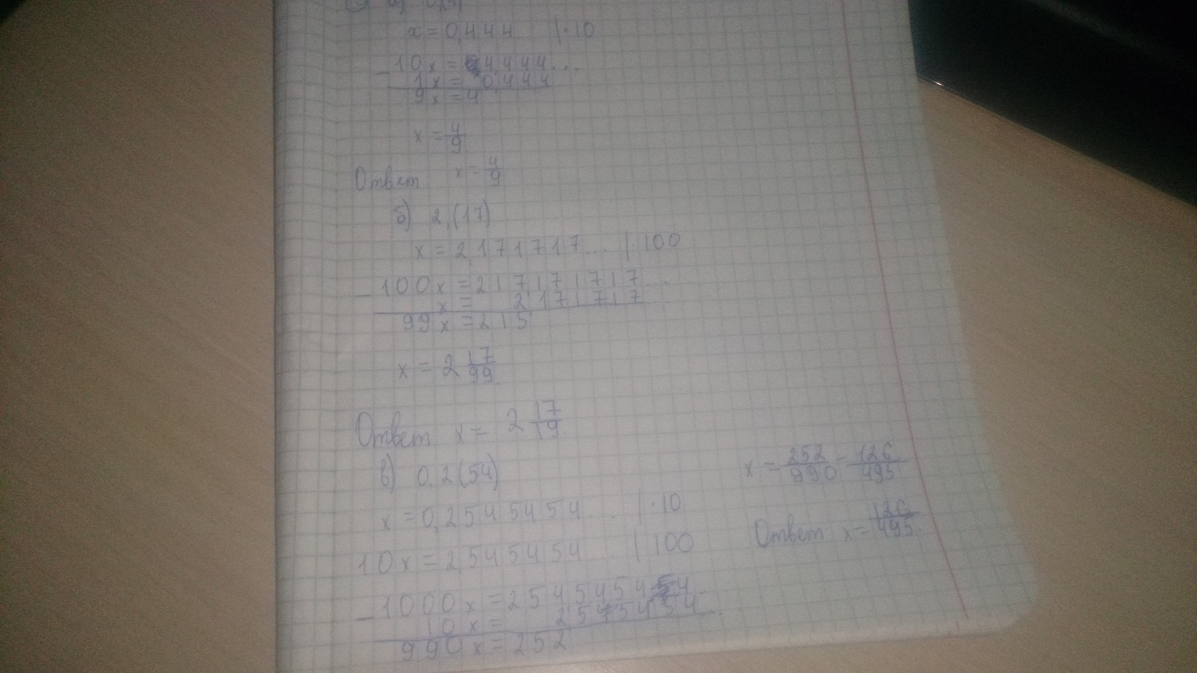 3. 1) Нам нужно, чтобы после x период повторялся 3 раза. К примеру, 0(3) - x=0,333... , 0,(25) - x=0,252525... , 2,5(23) - x=2,5232323... Я показала все случаи.
