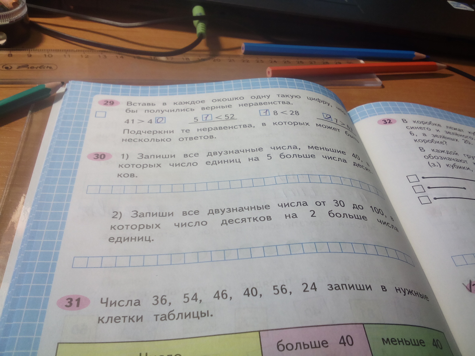 запиши все двухзначные числа меньше 40 в которых число единиц на 5больше числа десятков